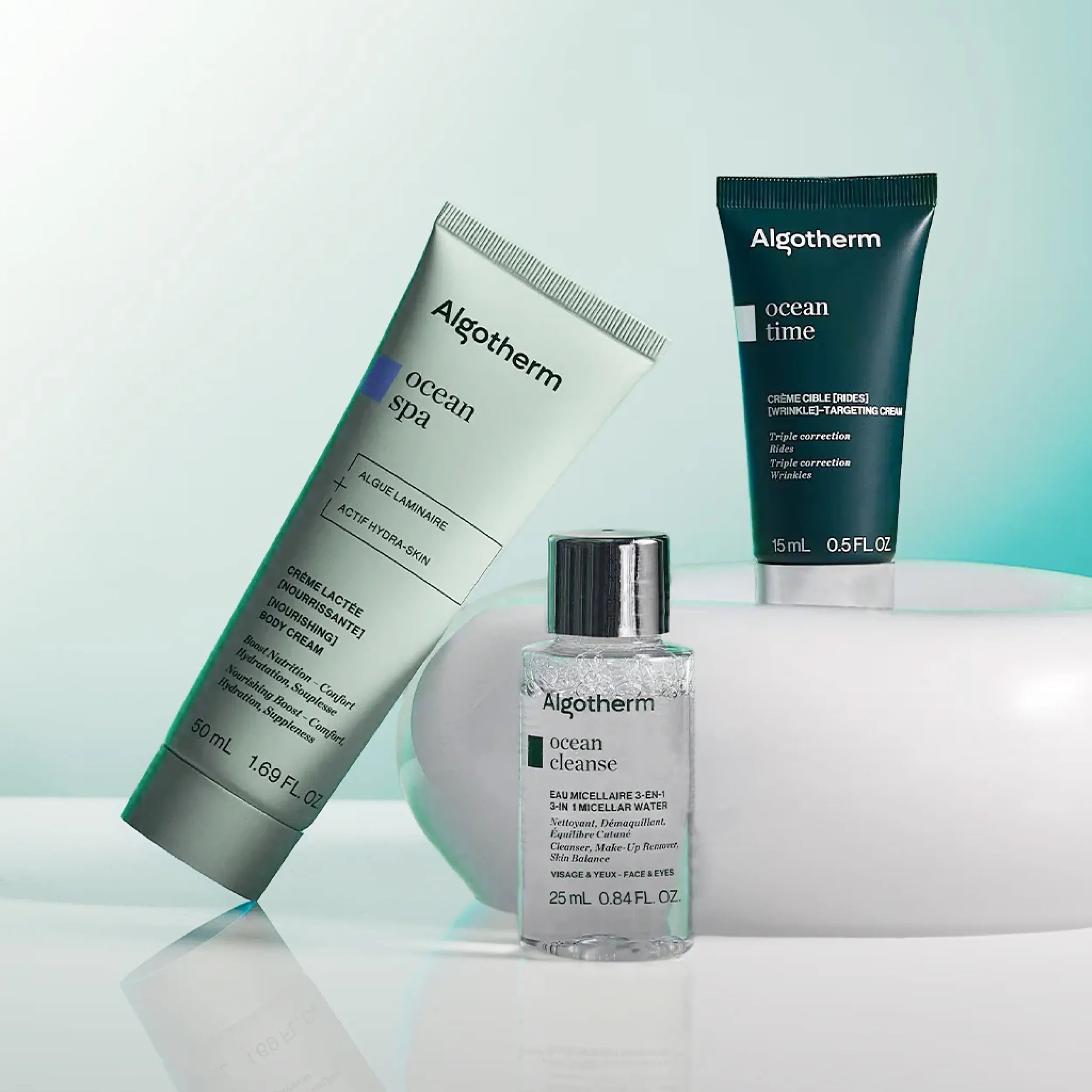 Offer valid from January 28 to February 15 inclusive on www.algotherm.com. Receive your free Discovery ritual with any product order: a pouch containing a 3-in-1 Micellar Water (25 ml), [Wrinkle]-Targeting Cream (15 ml), and Nourishing Body Cream (50 ml). Automatically added to your cart when conditions are met. Offer valid while stocks last. Applicable to all products. Cannot be combined with other ongoing offers.