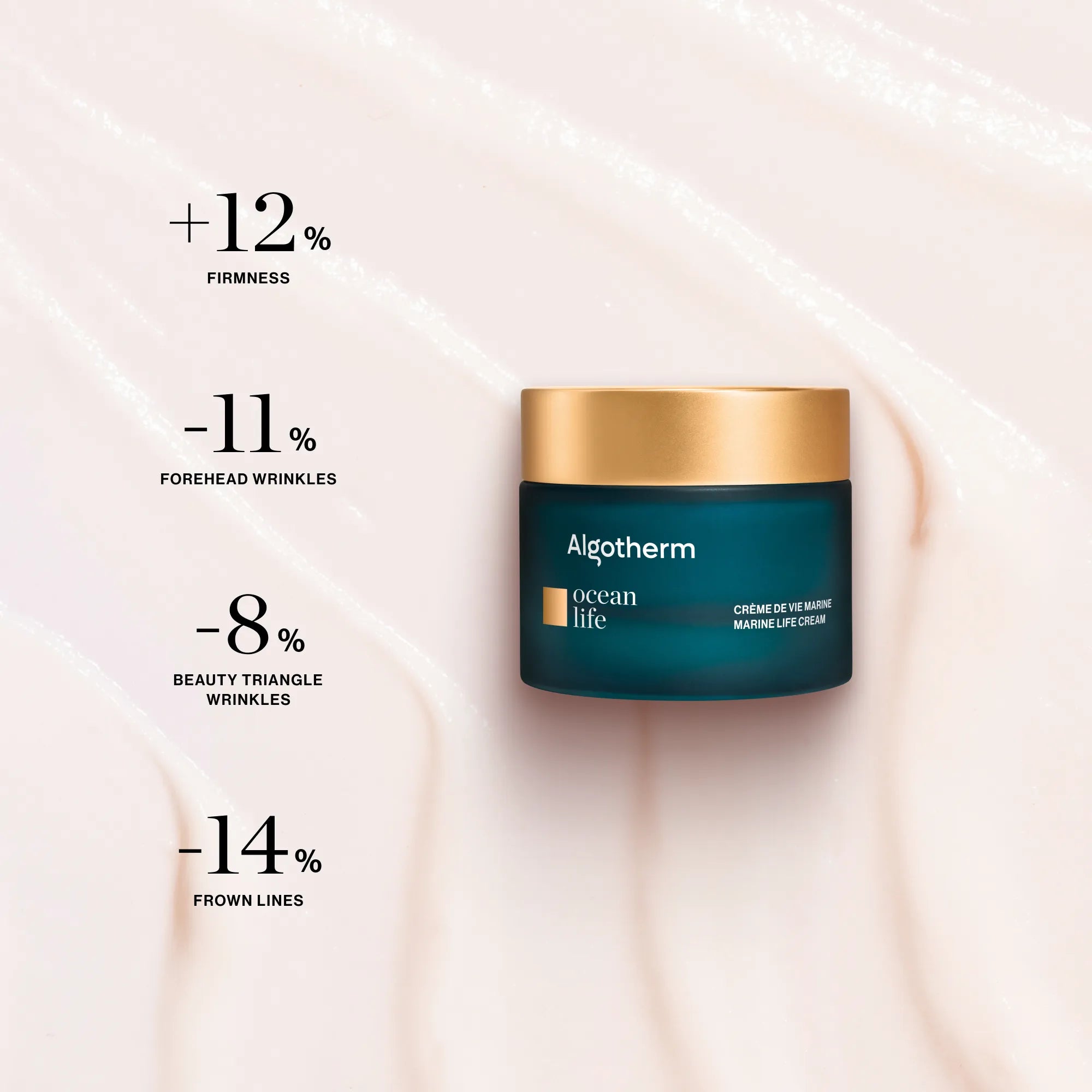 Ocean Life is the ultimate global anti-aging solution: proven results, visible from the first days, thanks to a complete treatment protocol designed to target all signs of aging simultaneously. These treatments strengthen the skin barrier, stimulate cell regeneration, improve elasticity, and neutralize oxidative stress, providing a true rejuvenating effect for visibly younger skin. A flagship bestseller of the brand, its effectiveness relies on formulas highly concentrated in targeted dermocosmetic actives and ALGOGĂNE[4], Algothermâs ultra-performing patented marine complex, the result of years of research.