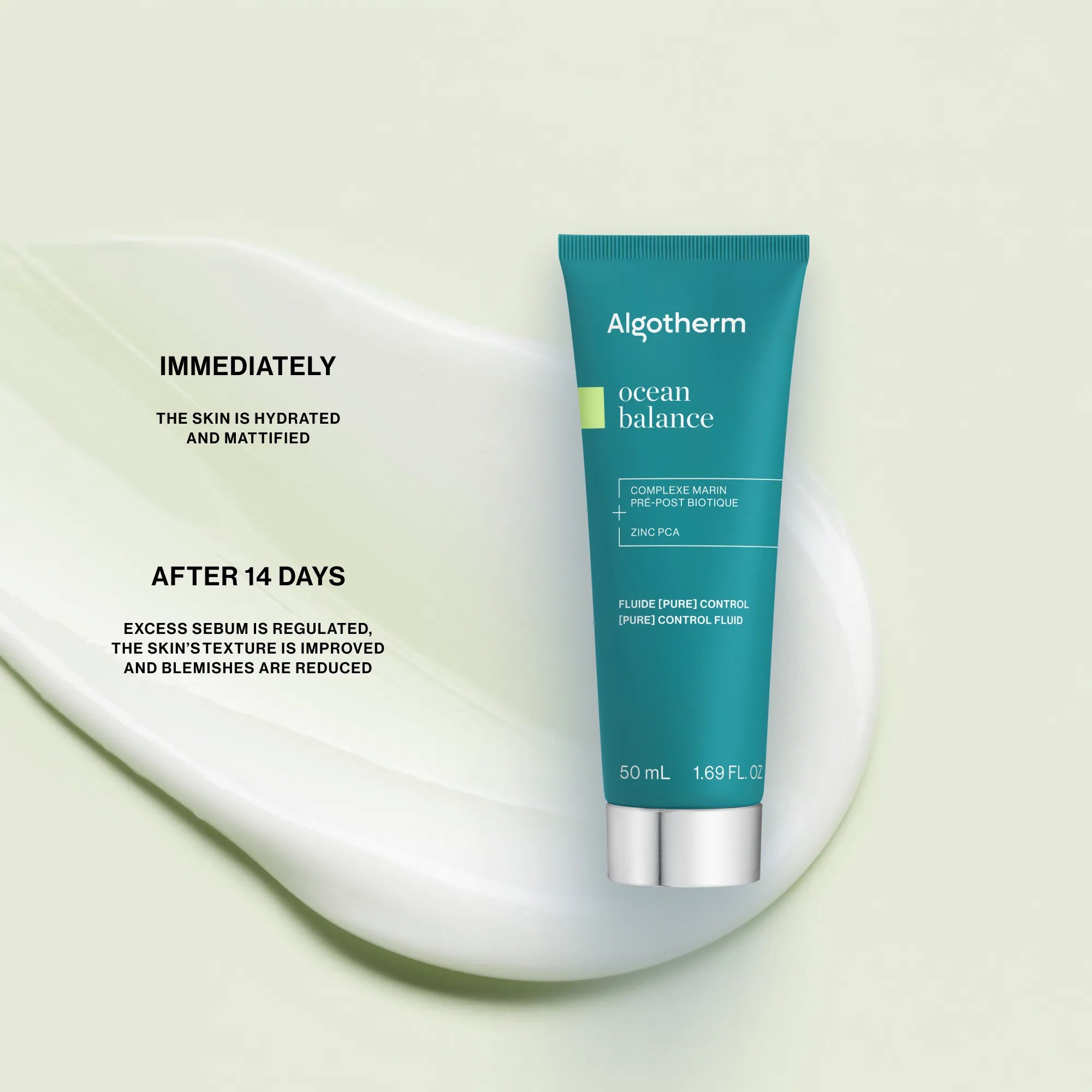 From the very first application, skin feels hydrated, comfortable and mattified, then visibly rebalanced in 14 days: excess sebum is regulated, skin texture is refined, imperfections are reduced and the skin barrier is strengthened.