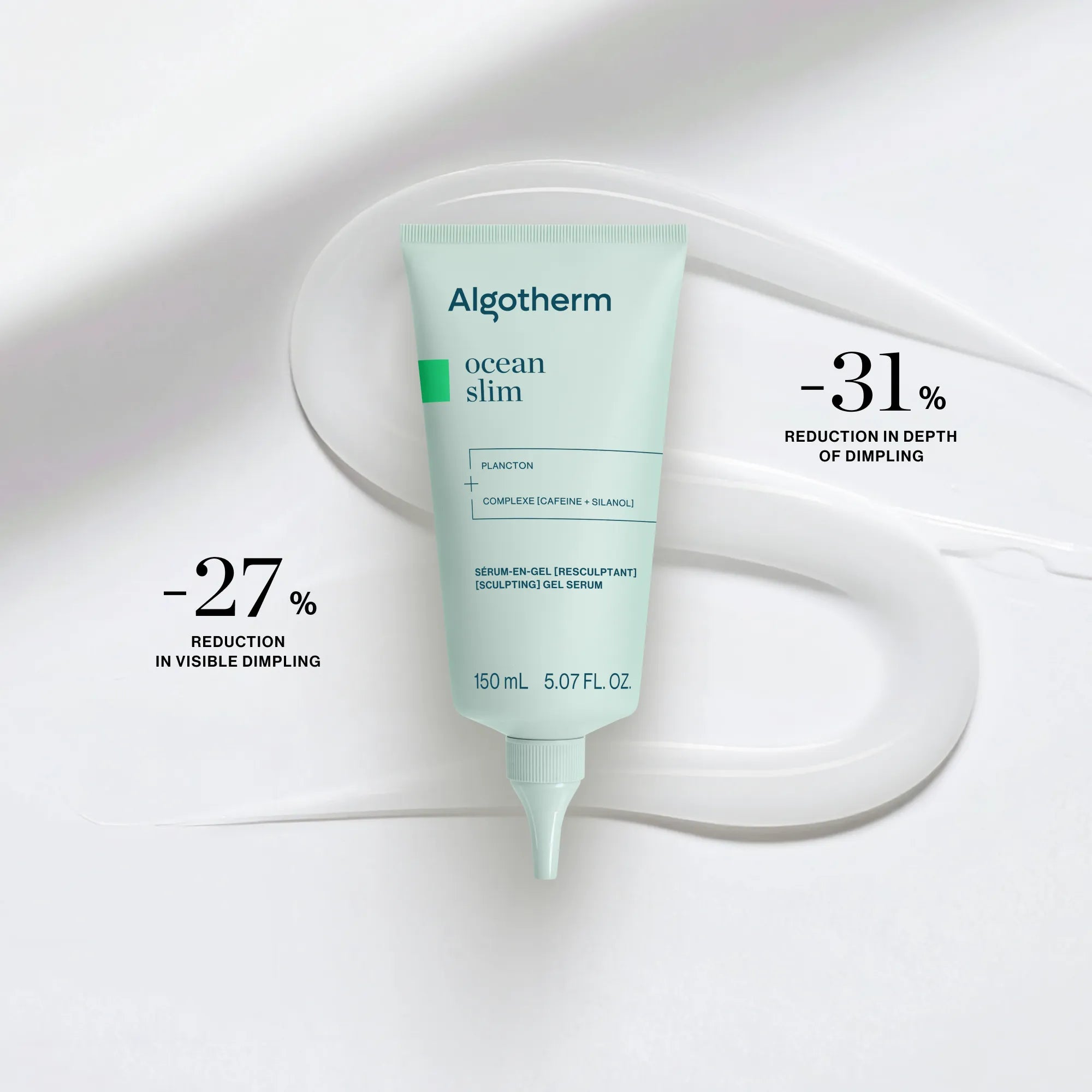 Ocean Slim embodies the full expertise of Marine Cosmeceuticals for body contouring. This slimming range targets stubborn areas and works in as little as 2 weeks to smooth, firm, and reshape the silhouette. Thanks to a synergy of powerful marine actives, capable of mimicking the effects of a workout on the body, and recognized dermocosmetic slimming ingredients, Ocean Slim offers a complete care protocol to counteract the effects of aging and lifestyle on the body. The skin is more toned, volumes are refined, and the silhouette is visibly reshaped.