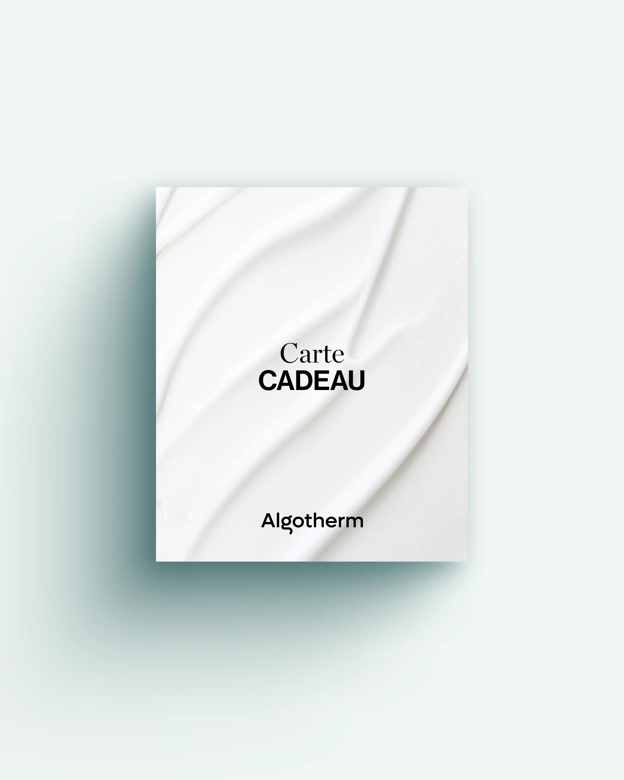 Offrez une parenthèse de bien-être avec la carte cadeau Algotherm. Produits ou soins, laissez vos proches choisir ce qui leur fera vraiment plaisir. Utilisable en ligne ou directement en spa, elle s’adapte à toutes les envies pour une expérience sur mesure.